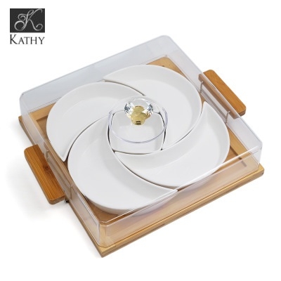 CERAWOOD Khay mứt vuông lốc xoáy 5 ô có nắp 5097