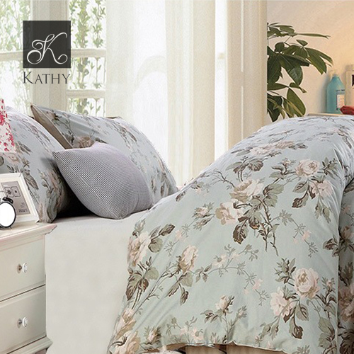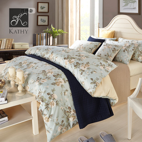FLOWERS Bộ chăn ga Egyptian Cotton xanh 1m5-1m8 2028