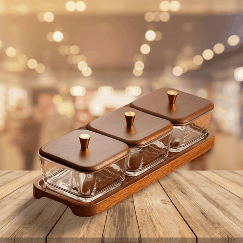 Bộ khay đựng snack kết hợp tinh tế giữa chất liệu gỗ tự nhiên và thủy tinh cao cấp, là một tuyệt phẩm hoàn hảo dành cho những ai yêu thích sự thanh lịch và tinh tế. Với thiết kế nhỏ gọn, xinh xắn, sản phẩm không chỉ mang đến sự tiện lợi trong việc phục vụ đồ ăn vặt mà còn đóng vai trò như một vật phẩm trang trí nội thất độc đáo, làm bừng sáng không gian sống của bạn.