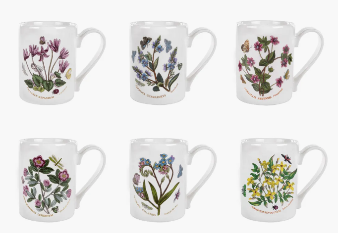 Những chiếc cốc cà phê Botanic Garden này sẽ là lựa chọn hàng đầu của bạn khi uống cà phê mỗi ngày. Được thiết kế để cầm rất thích, bộ sáu chiếc cốc này cũng rất đẹp để trưng bày, mỗi chiếc có một họa tiết hoa riêng. Cyclamen, Yellow Yasmin, Forget Me Not, Pimpernel, Rhododendron và Speedwell đều có trong bộ này. Có thể rửa bằng máy rửa chén và lò vi sóng, đây là những chiếc cốc được làm để sử dụng. Tìm loại hoa yêu thích của bạn và chiếc cốc yêu thích của bạn với bộ sáu chiếc Botanic Garden này.
