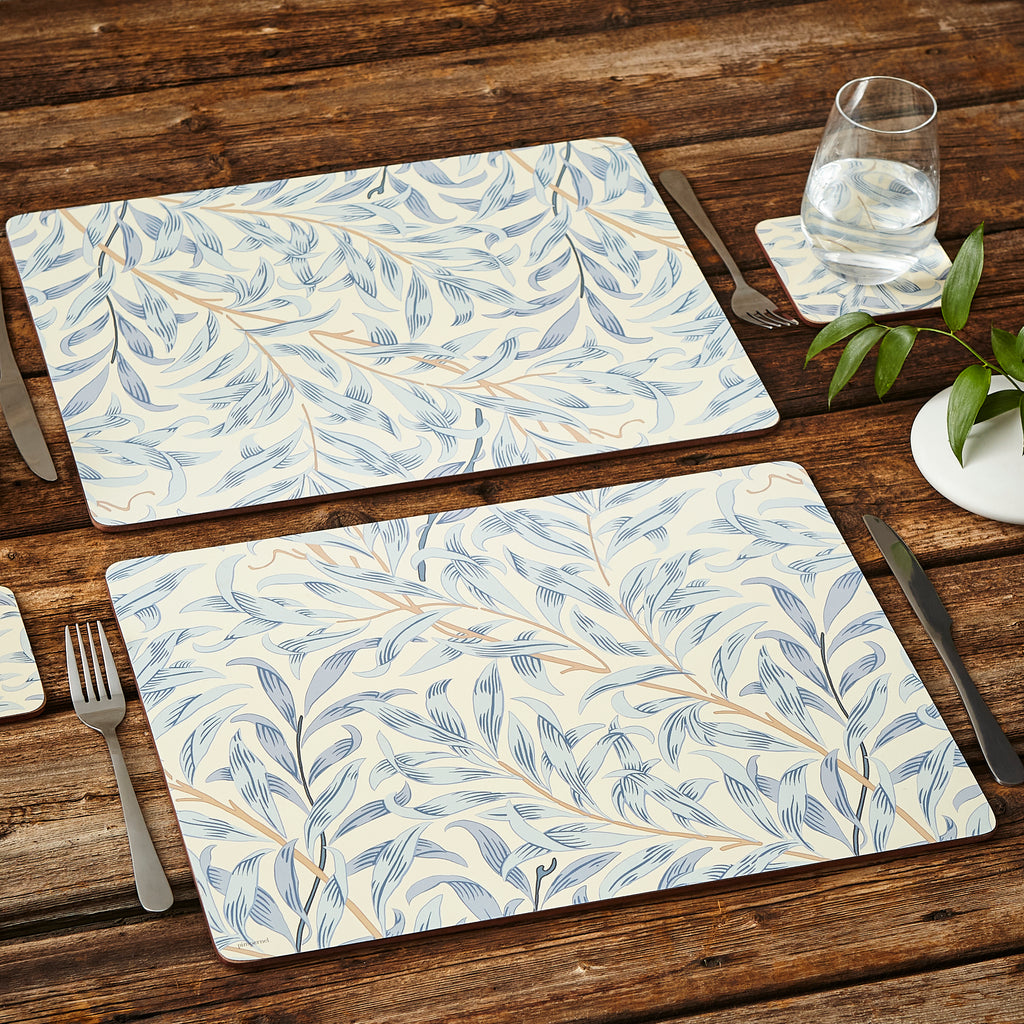 Với thiết kế Willow Bough màu xanh thanh lịch tuyệt đẹp từ Morris & Co., những tấm lót đĩa lớn hơn này có lớp ván dày 5mm được phủ hoàn toàn bằng lớp phủ chất lượng cao vừa chống bẩn vừa chịu nhiệt đến 100 độ C. Mỗi tấm lót đĩa sau đó được hoàn thiện bằng mặt sau bằng nút chai cứng và cách nhiệt để bảo vệ bề mặt. Với kích thước lớn, bộ bốn tấm lót đĩa này có thể kết hợp với đế lót ly phù hợp và bộ sáu tấm lót đĩa kích thước thông thường để tạo nên một cách bày bàn thông minh và tinh tế.
