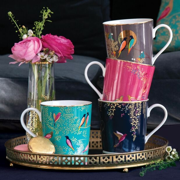 Hãy chiêu đãi bản thân hoặc bạn bè chiếc cốc tuyệt vời này của Bộ sưu tập Sara Miller London Chelsea. Những chú chim đặc trưng của Sara Miller đang nghỉ ngơi một cách đáng yêu trong khu vườn đẹp như mơ, trên nền xám đen. Điều làm nên sự khác biệt của chiếc cốc này là các chi tiết bằng vàng 22 cara lấp lánh khi chúng chiếu sáng. Hộp quà ép giấy bạc cũng là món quà đẹp nhất.