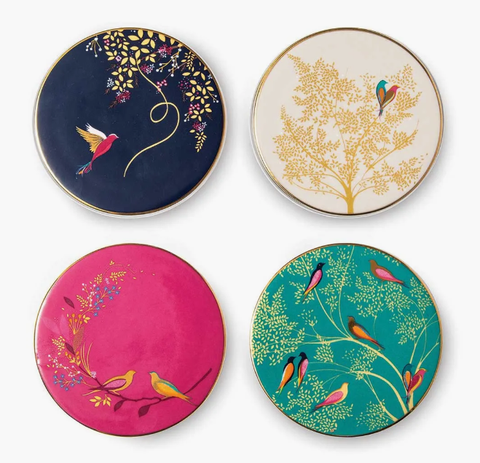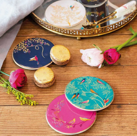 Bộ lót ly rực rỡ này từ Sara Miller London là điểm nhấn ấn tượng cho ngôi nhà của bạn. Với những sắc hồng, xanh lá, xanh dương và xám quyến rũ, những chiếc lót ly sứ cao cấp này nổi bật với chi tiết vàng 22 carat lấp lánh cùng thiết kế tinh tế hình chim ruồi và cây hoa. Sử dụng cho những dịp uống nước hoặc ăn uống hàng ngày, giúp bề mặt luôn sạch sẽ, không để lại vết bẩn. Được đựng trong hộp quà tặng xinh xắn, bộ lót ly này là một món quà tuyệt vời dành tặng người thân yêu, những người yêu thích sự lấp lánh.