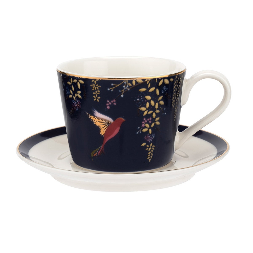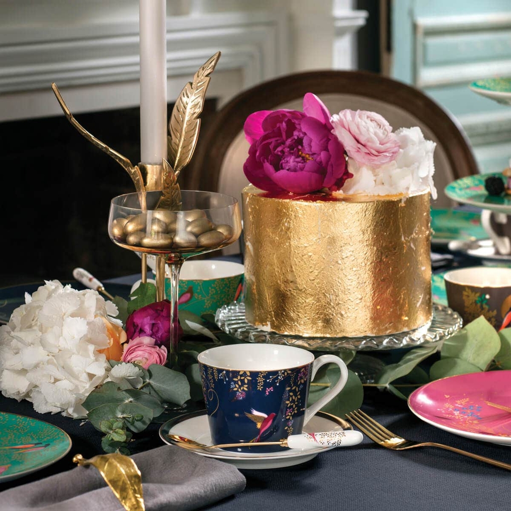 Với hình ảnh chú chim ruồi xinh đẹp giữa một cây hoa đầy mật hoa, bộ tách trà và đĩa lót màu xanh đậm của Sara Miller London Portmeirion khiến mỗi tách trà trở nên đặc biệt hơn. Được trang trí bằng vàng 22 carat, bộ tách trà lấp lánh vẻ sang trọng. Thuộc Bộ sưu tập Chelsea, sản phẩm được thiết kế như một phần của bộ sưu tập trà chiều bằng sứ cao cấp đầy mê hoặc và dễ dàng kết hợp với các vật dụng khác để tạo nên một bộ bàn ăn tinh tế. Được đựng trong hộp quà tặng tuyệt đẹp, đây sẽ là một món quà tuyệt vời.