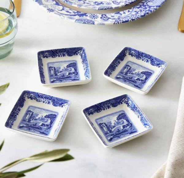 PM SPODE Blue Italian Đĩa chấm vuông 3inch