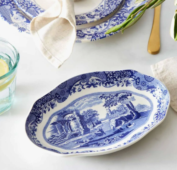 PM SPODE Blue Italian Đĩa Oval 8.5inch