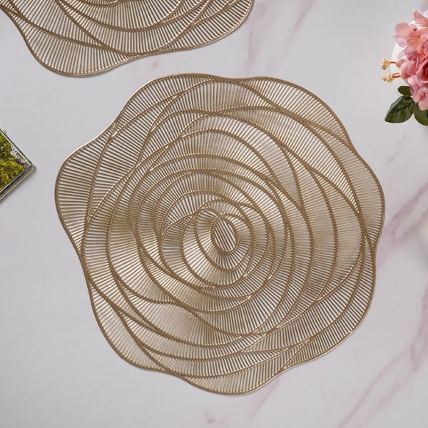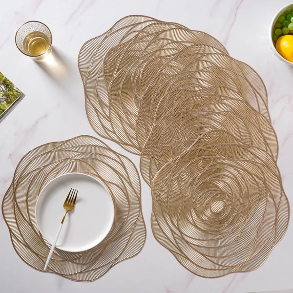 Màu vàng óng ánh với hình dáng những bông hoa hồng nở rộ, tô điểm cho bàn ăn thêm phần quyến rũ, thu hút khách khứa. Tấm lót bàn lưới có bề mặt bán mờ, có thể đặt trực tiếp lên mặt bàn hoặc trải lên khăn trải bàn. Tấm lót bàn chống trượt tạo điểm nhấn cho mặt bàn và làm nổi bật món ăn được phục vụ. Tấm lót bàn tròn lý tưởng cho việc sử dụng hàng ngày vì dễ vệ sinh và cũng có thể dùng để trang trí bàn ăn trong không khí lễ hội.