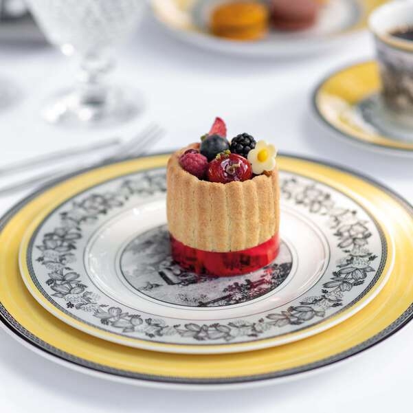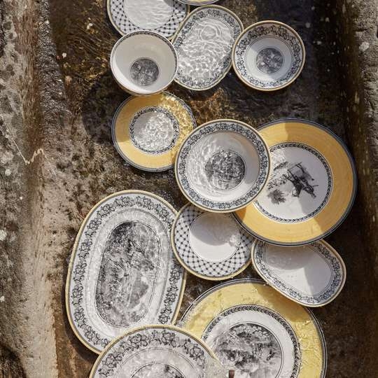 Bộ đồ ăn có phong cảnh phức tạp được khắc họa theo phong cách đồng quê được lấy cảm hứng từ những bức vẽ hơn 200 năm tuổi. Họa tiết nổi bật khung cảnh lãng mạn gợi nhớ về khoảng thời gian đã bị lãng quên từ lâu, thường mang lại cảm giác của sự ấm áp, gần gũi với thiên nhiên và cuộc sống nông thôn.