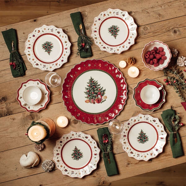 Tạo không khí lễ hội hoài niệm trong ngôi nhà của bạn với bộ sưu tập Christmassy Toy's Delight. Bộ đồ ăn được trang trí với họa tiết vui tươi màu đỏ, xanh lá cây và trắng, gợi nhớ về những kỷ niệm tuổi thơ. Kết hợp, sưu tầm và tặng. Phục vụ bánh ngọt và bánh ngọt lễ hội theo phong cách đặc biệt trên chiếc đĩa này. Làm hài lòng khách của bạn với bộ đồ ăn sành điệu.
