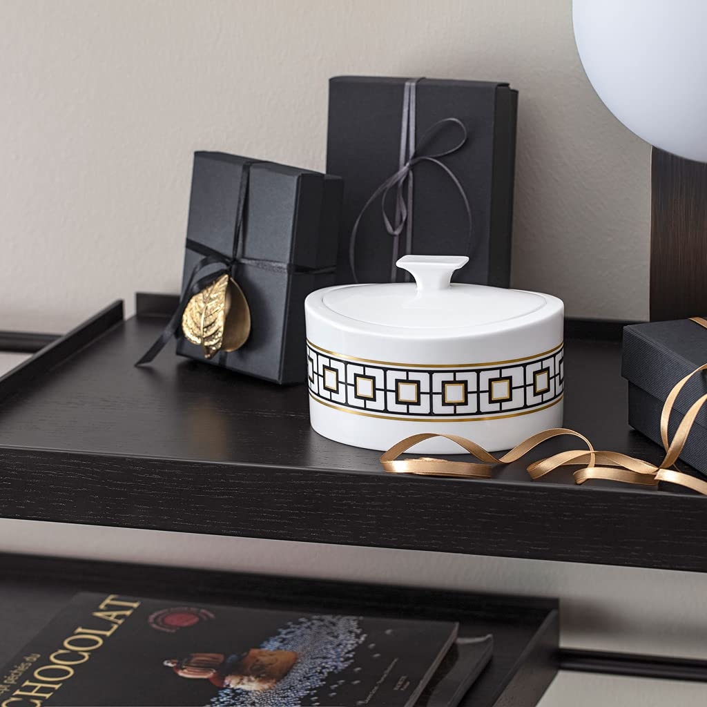 Hũ đựng mứt thuộc bộ sưu tập MetroChic của Villeroy & Boch, mã sản phẩm 1044838230, là một sản phẩm tinh tế, kết hợp giữa thiết kế hiện đại và chất liệu sứ xương cao cấp.