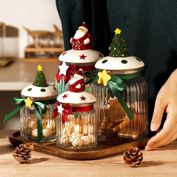 Trang trí Giáng sinh -- Hũ thủy tinh nhà bếp Giáng sinh xinh xắn này có nhiều họa tiết Giáng sinh, với hình ảnh Ông già Noel và cây thông rất phổ biến, tràn ngập tình yêu Giáng sinh. Màu sắc tươi sáng, tỉ mỉ đến từng chi tiết và phù hợp với chủ đề của không khí lễ hội, mang đến cho gia đình bạn những trải nghiệm thị giác thú vị.