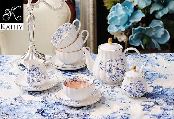 PUMPKIN bộ trà chiều 21 món màu hoa xanh 2142C